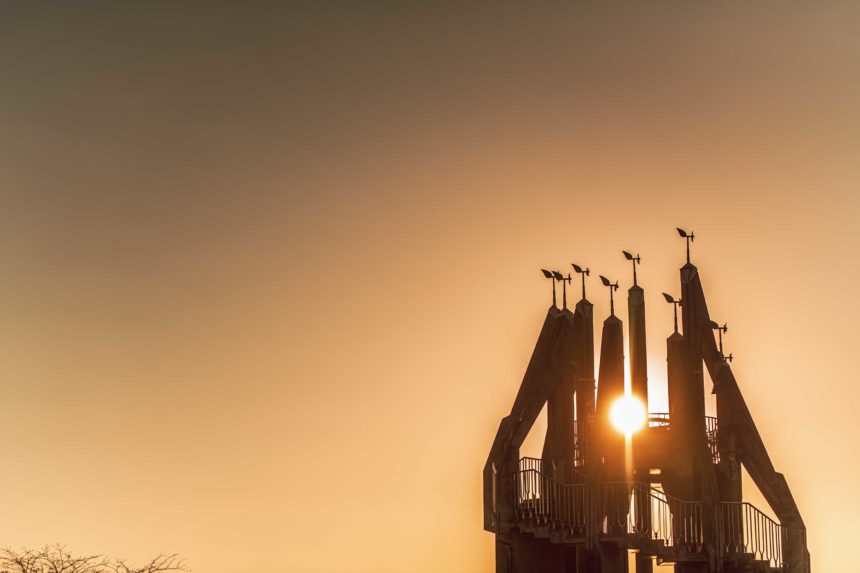 シンボルタワーでは、願いを込めて鍵をかけると結ばれるいう噂から恋人たちのメッカに。