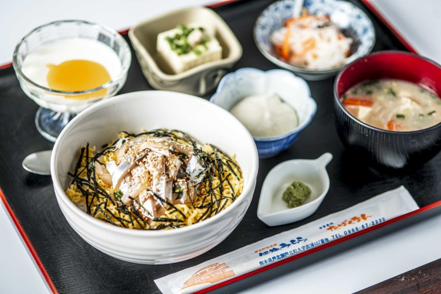 芦北特産の太刀魚を使った太刀魚丼を筆頭に、芦北の温暖な気候が育んだおいしい山の幸、新鮮な海の幸が食べられます。